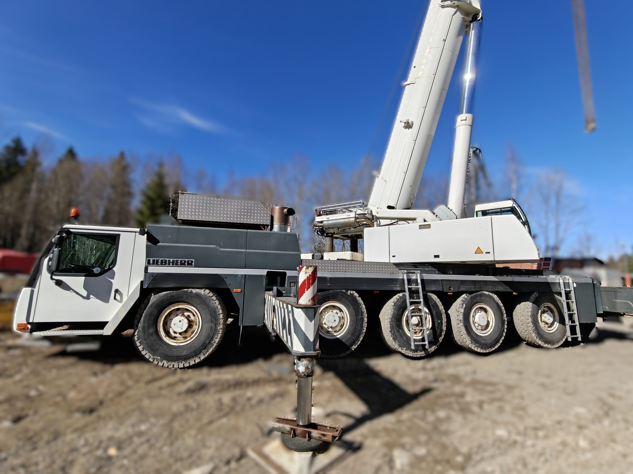 Erittäin tehokas 220 tonninen nosturi esim. elementtien asennustyöhön. Kahdella vinssillä elementin kääntö ilmassa onnistuu helposti.