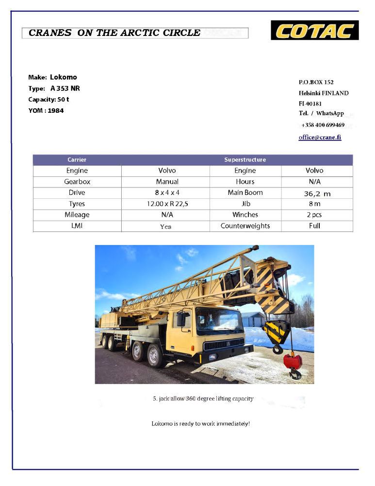 Nosturi on Lopella, tervetuloa katsomaan ja testaamaan.